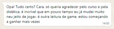 E se você gostar do produto, vai evoluir tecnicamente e conseguir ter resultados, e claro, vai ficar com vontade de dar os próximos passos e comprar outros treinamentos no futuro (essa é a “jogada”).